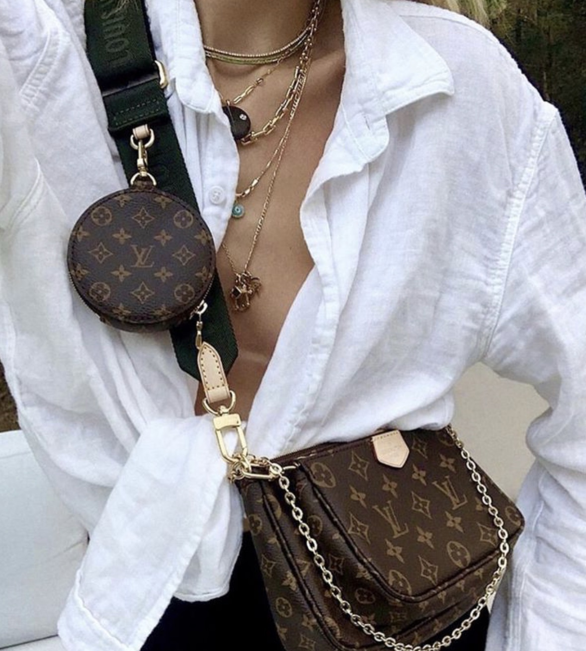 This is the Louis Vuitton Pouchette bag. This bag is three bags in one while all connected to one thick strap. This is a trending bag due to the fact it has a small pocket perfect for holding air pods. I first saw this bag on Rihanna and ever since I’ve been intrigued.